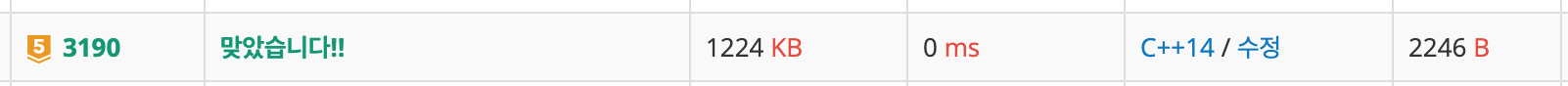 if(!isApple) q.pop_back(); // 사과가 없으니 꼬리도 같이 전진