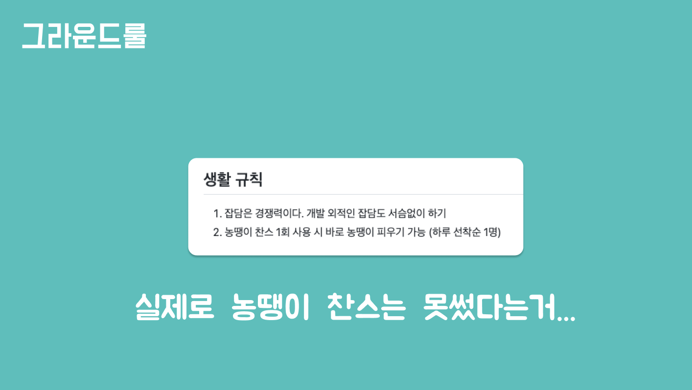 실제로 농땡이 찬스를 쓰지는 못했으나, 잡담을 정말 많이 했고 재밌게 프로젝트했던 것 같다.