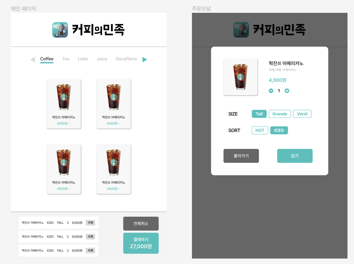 말 그대로 키오스크를 만드는 프로젝트였다.
