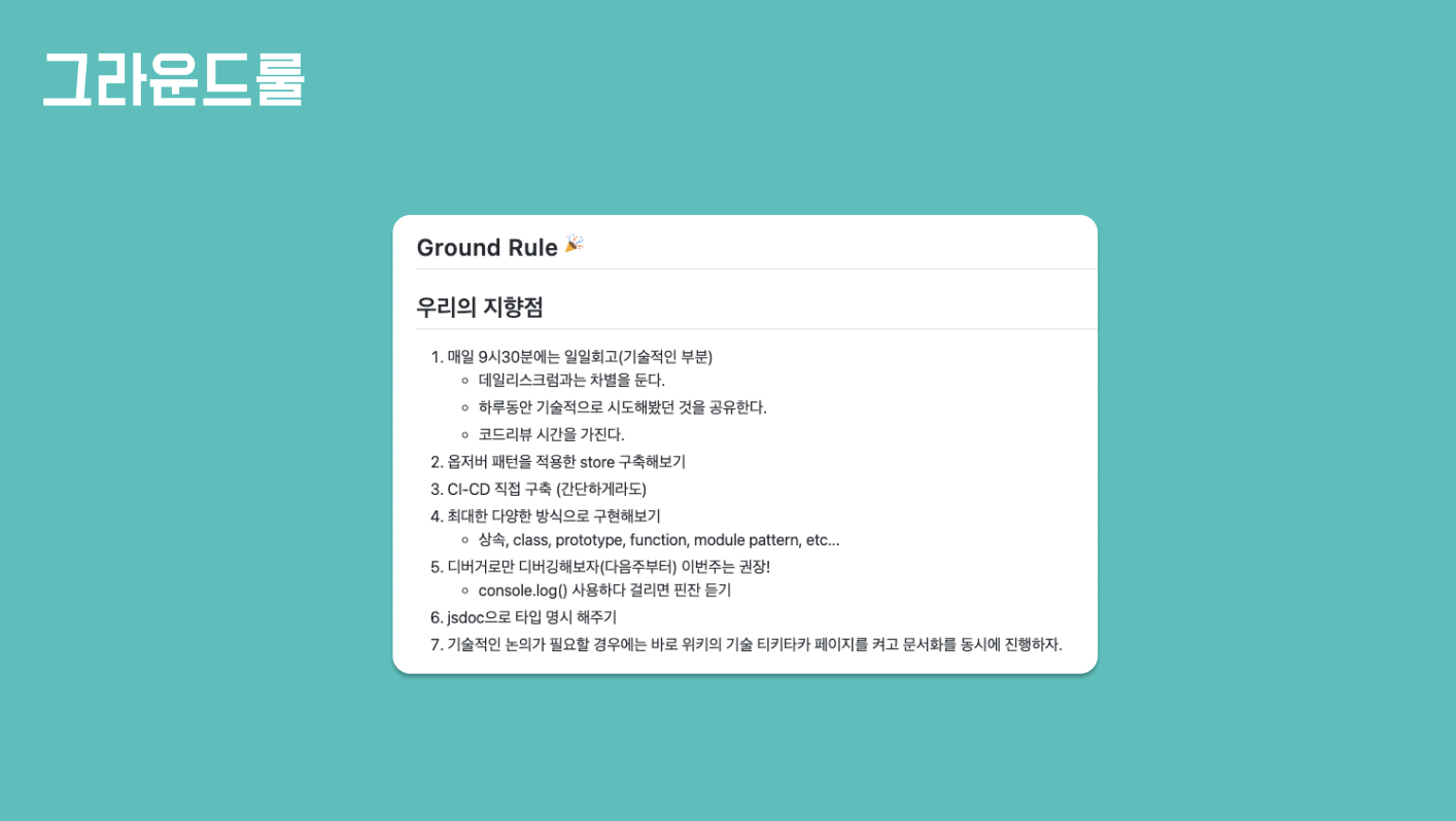 그라운드룰도 디테일하게 설정했고 기술적인 목표도 설정해보았다.